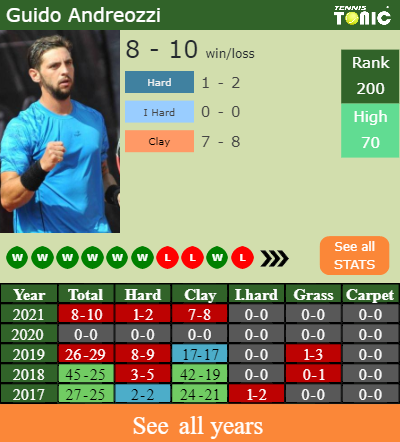 Andreozzi has an overall 8-10 win-loss record in 2021, 0-0 on grass (See FULL STATS).