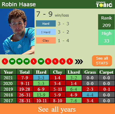 Haase has a composed 7-9 win-loss record in 2021, 0-0 on grass (See FULL STATS).