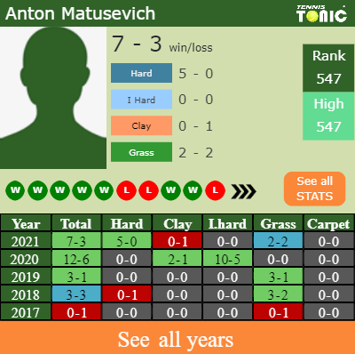 In terms of his career, Matusevich has an overall 25-14 record. He has a positive 8-6 record on grass.