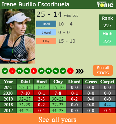 Burillo Escorihuela has a composed 25-14 win-loss record in 2021, 0-0 on grass (See FULL STATS).