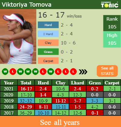 Viktoriya has a composed 16-17 win-loss record in 2021, 0-2 on grass (See FULL STATS).