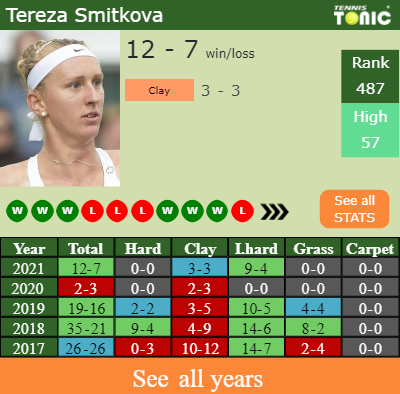 Smitkova has an overall 12-7 win-loss record in 2021, 0-0 on grass (See FULL STATS).