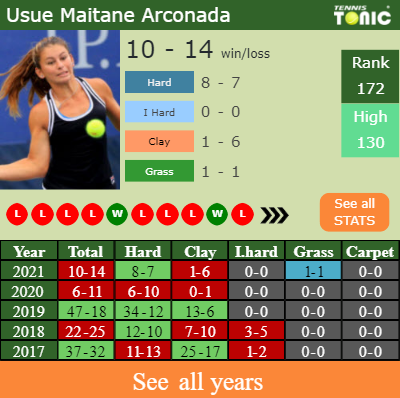 In terms of her career, Usue has an overall 203-159 record. She has a positive 6-4 record on grass.