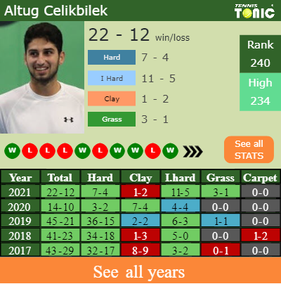 Celikbilek has a composed 22-12 win-loss record in 2021, 3-1 on grass (See FULL STATS).