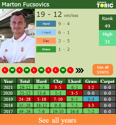 In terms of his career, The Hungarian has an overall 380-266 record. He has a positive 26-18 record on grass.