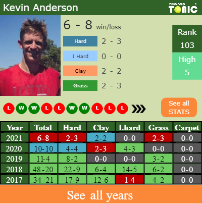 Anderson has a compiled 6-8 win-loss record in 2021, 2-3 on grass (See FULL STATS).