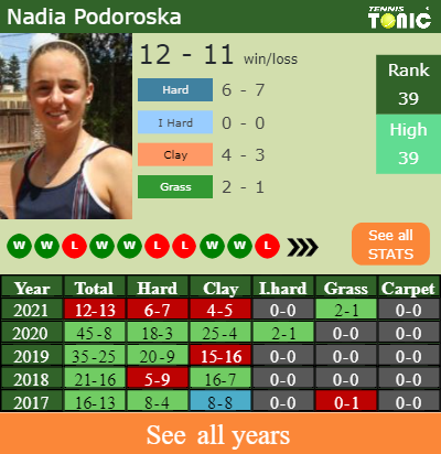 Prediction and head to head Nadia Podoroska vs. Ann Li