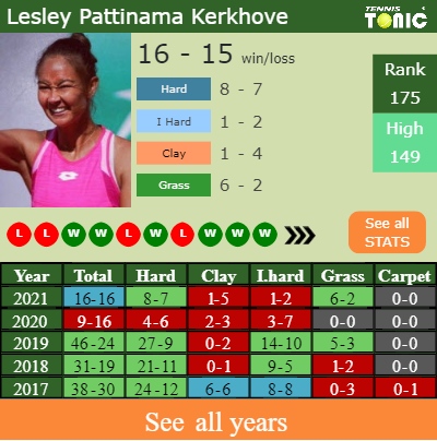 The Dutch has a composed 16-16 win-loss record in 2021, 6-2 on grass (See FULL STATS).
