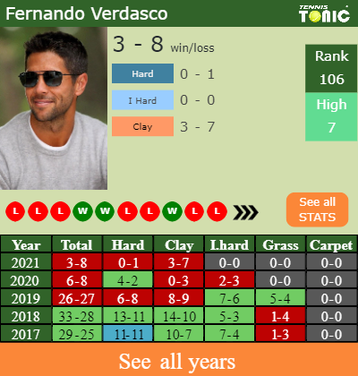 Fernando has a compiled 3-8 win-loss record in 2021, 0-0 on grass (See FULL STATS).