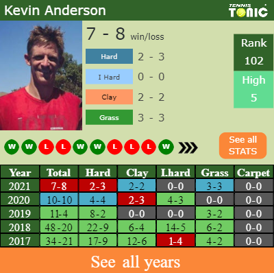 Anderson has an overall 7-8 win-loss record in 2021, 3-3 on grass (See FULL STATS).