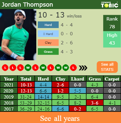 The Australian has a composed 10-13 win-loss record in 2021, 4-3 on grass (See FULL STATS).