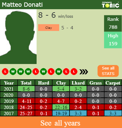 Donati has a compiled 8-6 win-loss record in 2021, 5-4 on clay (See FULL STATS).