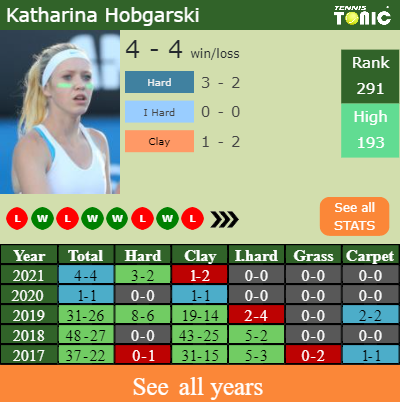 Hobgarski has a composed 4-4 win-loss record in 2021, 1-2 on clay (See FULL STATS).