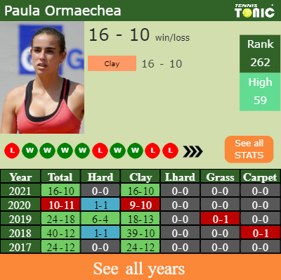 Ormaechea has a composed 16-10 win-loss record in 2021, 16-10 on clay (See FULL STATS).