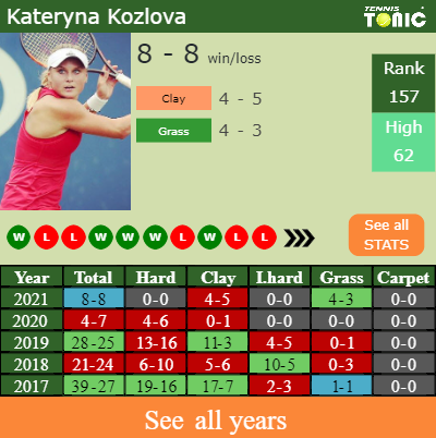 Kozlova has a compiled 8-8 win-loss record in 2021, 4-5 on clay (See FULL STATS).