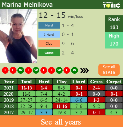 Talking about her overall career, Melnikova has an overall 329-315 record. She has a positive 185-158 record on clay.