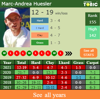 - Marc-Andrea HueslerHuesler – Lukas RosolRosol (0-0) – H2H and prediction