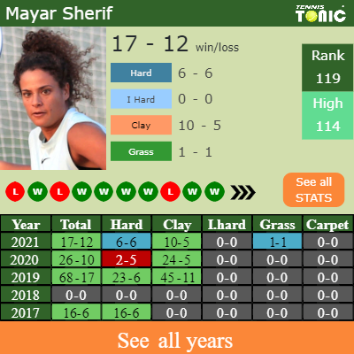 Sherif has a compiled 17-12 win-loss record in 2021, 10-5 on clay (See FULL STATS).