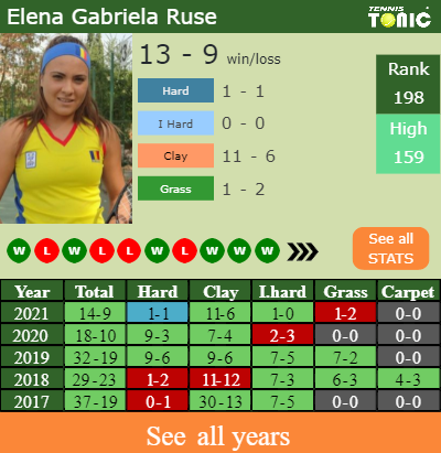 The Romanian has a compiled 14-9 win-loss record in 2021, 11-6 on clay (See FULL STATS).