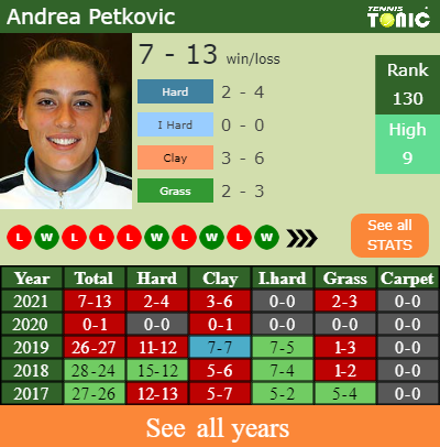 - Andrea PetkovicPetkovic – Yulia PutintsevaPutintseva (1-3) – H2H and prediction