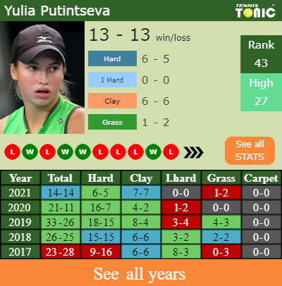 Talking about her overall career, Yulia has an overall 353-259 record. She has a positive 122-70 record on clay.