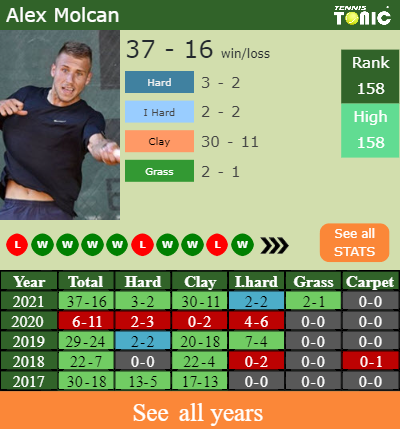 Molcan has a composed 37-16 win-loss record in 2021, 30-11 on clay (See FULL STATS).