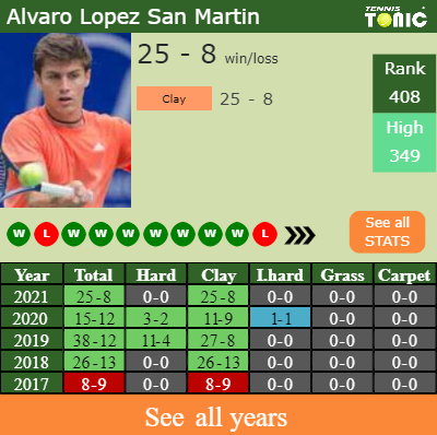 In terms of his career, Alvaro has an overall 182-80 record. He has a positive 161-70 record on clay.