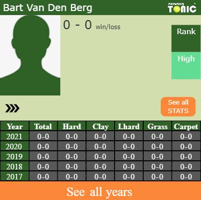 Talking about his overall career, Van Den Berg has an overall 0-0 record. He has a flat 0-0 record on clay.