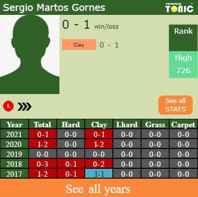 In terms of his career, Sergio has an overall 2-8 record. He has a negative 2-6 record on clay.