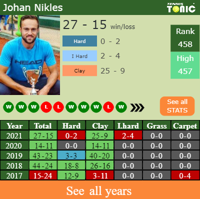 The pick for Tennis Tonic is Johan Nikles who should win in 2 sets.