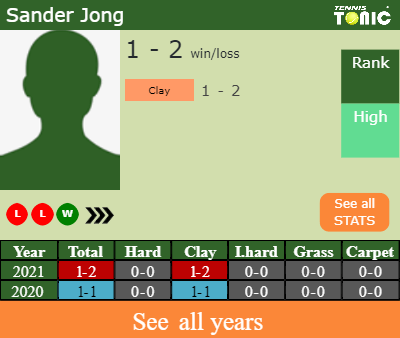 Jong has a compiled 1-2 win-loss record in 2021, 1-2 on clay (See FULL STATS).
