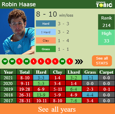 Robin has an overall 8-10 win-loss record in 2021, 1-4 on clay (See FULL STATS).