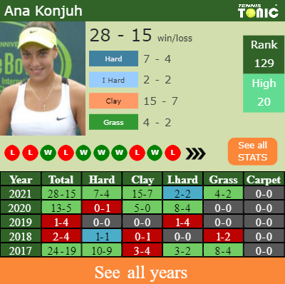 - Ana KonjuhKonjuh – Tereza MrdezaMrdeza (2-0) – H2H and prediction