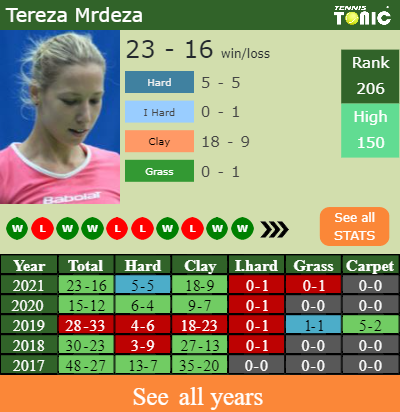 Tereza has an aggregate 23-16 win-loss record in 2021, 18-9 on clay (See FULL STATS).