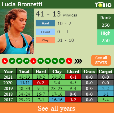 Lucia has a compiled 41-13 win-loss record in 2021, 31-10 on clay (See FULL STATS).