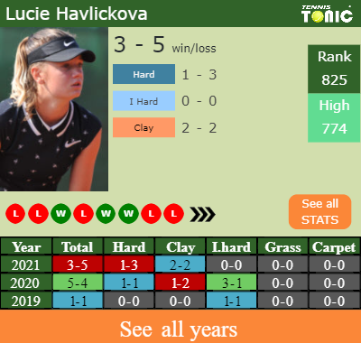 In terms of her career, Havlickova has an overall 9-10 record. She has a negative 2-4 record on hard.
