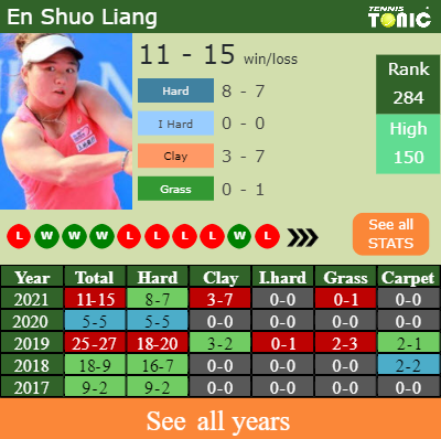 Shuo has an overall 11-15 win-loss record in 2021, 8-7 on hard (See FULL STATS).