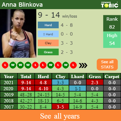 Talking about her overall career, Blinkova has an overall 190-127 record. She has a positive 38-29 record on clay.
