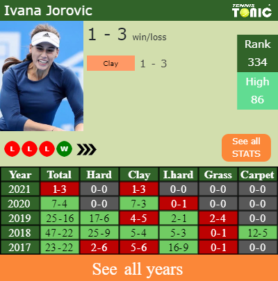In terms of her career, Jorovic has an overall 230-125 record. She has a positive 59-43 record on clay.