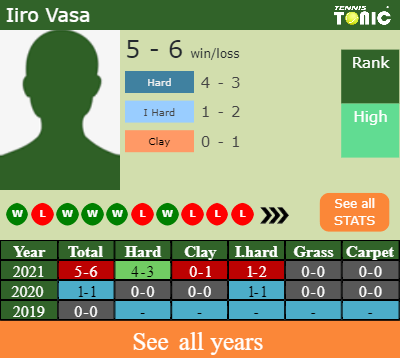 Vasa has an aggregate 5-6 win-loss record in 2021, 0-1 on clay (See FULL STATS).