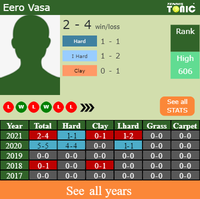Currently unranked, Vasa will start his run in the Tampere Challenger after he played his last match in M15 Helsinki where he lost 6-3 6-3 to Tabur in the 1st round on the 2nd of June.