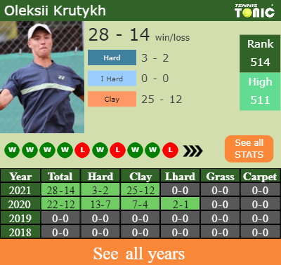 Oleksii has a compiled 28-14 win-loss record in 2021, 3-2 on hard (See FULL STATS).