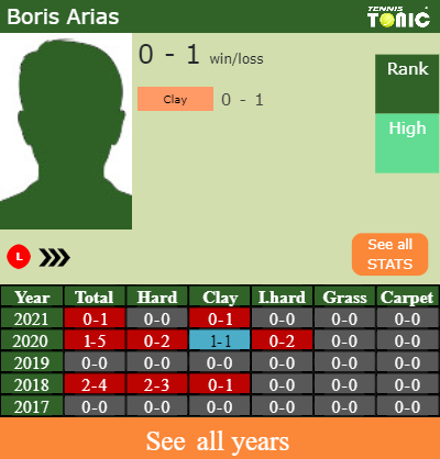 Boris has an aggregate 0-1 win-loss record in 2021, 0-0 on hard (See FULL STATS).