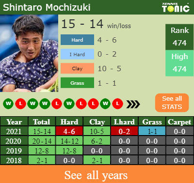 Mochizuki has a compiled 15-14 win-loss record in 2021, 4-6 on hard (See FULL STATS).