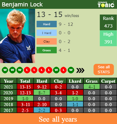 Lock has a compiled 13-15 win-loss record in 2021, 9-12 on hard (See FULL STATS).