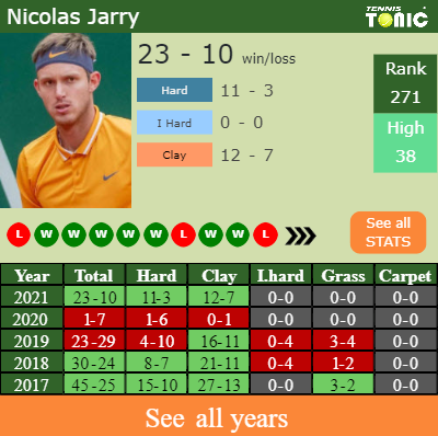 Jarry has a composed 23-10 win-loss record in 2021, 12-7 on clay (See FULL STATS).
