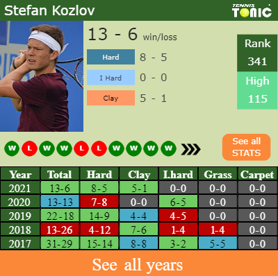 Stefan has an aggregate 13-6 win-loss record in 2021, 8-5 on hard (See FULL STATS).