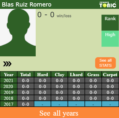 Talking about his overall career, Ruiz Romero has an overall 0-0 record. He has a flat 0-0 record on hard.