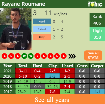 Ranked no. 406, Roumane will start his run in the Pozoblanco Challenger after he played his last match in M25 Bakio where he lost 7-5 4-4 ret. to Grenier in the 1st round on the 29th of June.