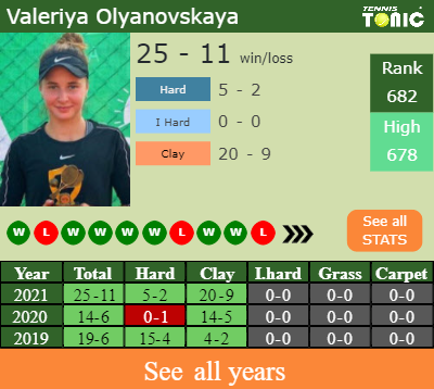 In terms of her career, Olyanovskaya has an overall 58-23 record. She has a positive 38-16 record on clay.